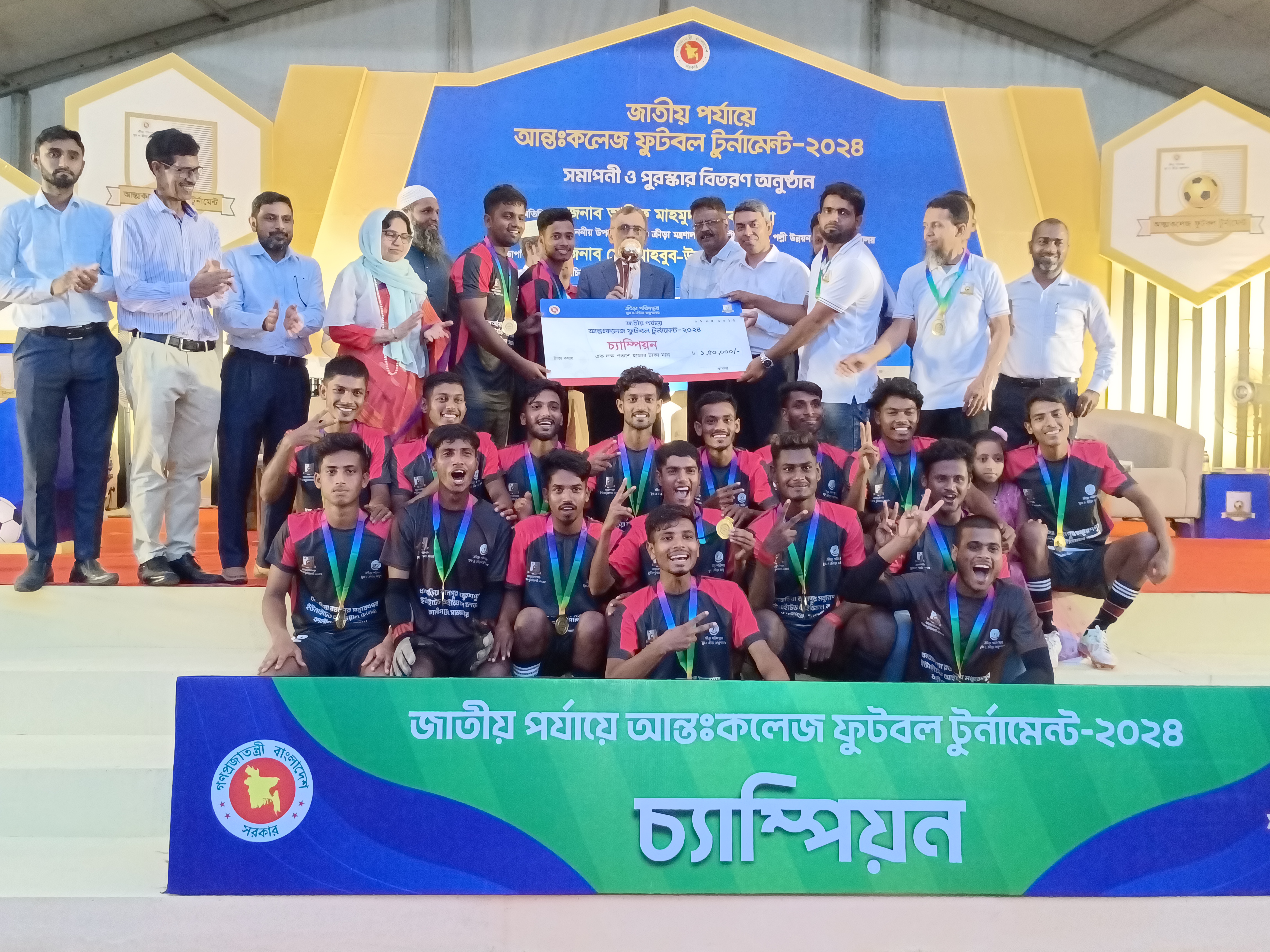 যুব ও ক্রীড়া মন্ত্রণালয়ের উদ্যোগে ক্রীড়া পরিদপ্তর কর্তৃক আয়োজিত আন্তঃকলেজ ফুটবল টুর্নামেন্ট-২০২৪ এর সমাপন ও পুরস্কার বিতরণ অনুষ্ঠানের স্থিরচিত্র।