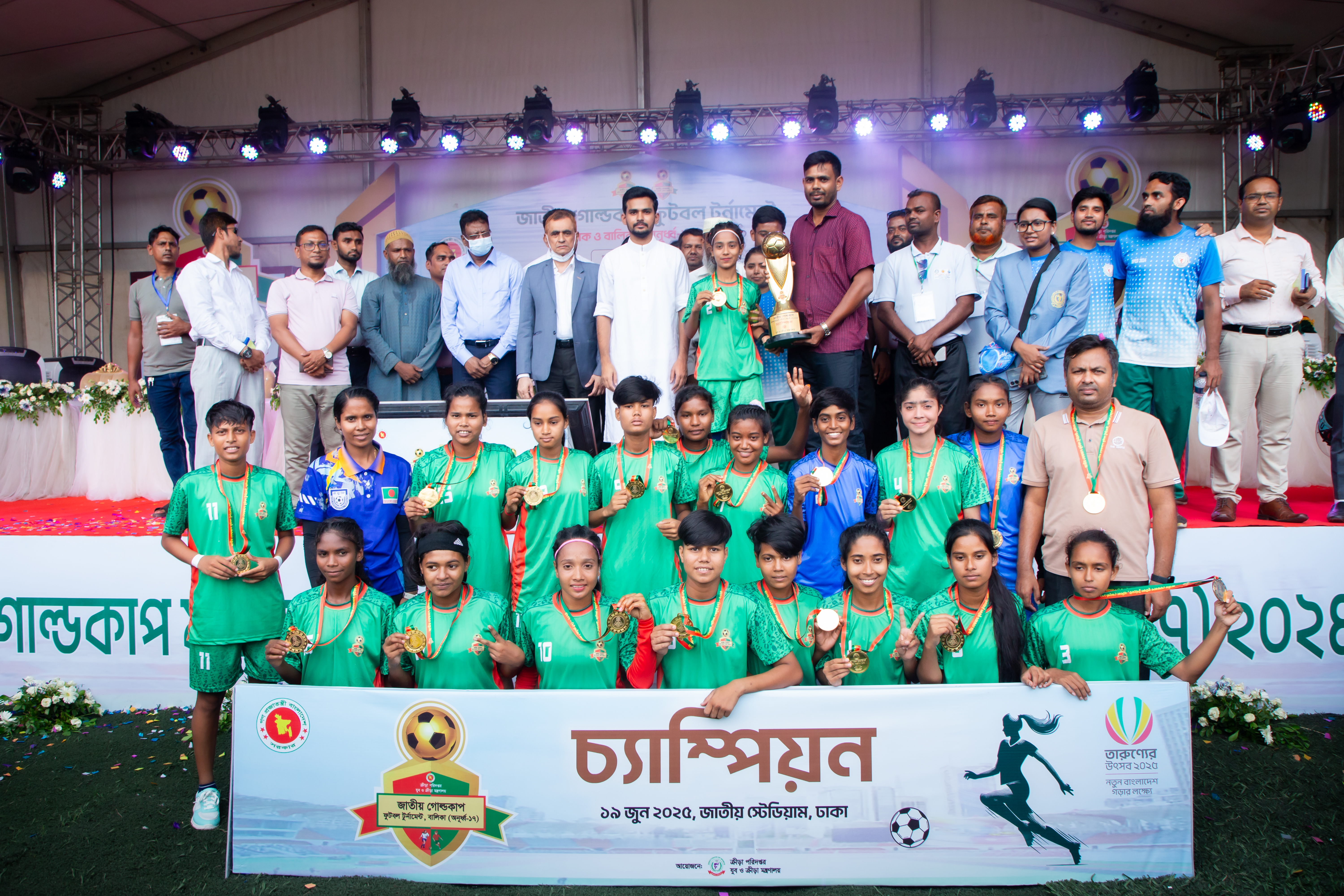 জাতীয় গোল্ডকাপ ফুটবল টুর্নামেন্ট, বালক ও বালিকা (অনূর্ধ্ব-১৭)- ২০২৪ এর সমাপন ও পুরস্কার বিতরণ অনুষ্ঠানের স্থিরচিত্র।